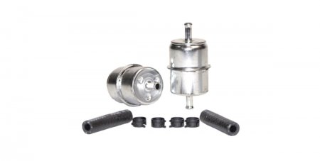 Bränslefilter i plåt med slangklämmor 2 st korta bränsleslangar.