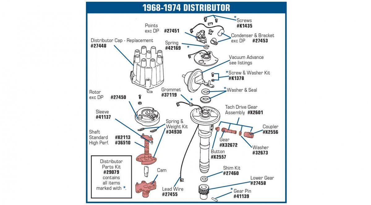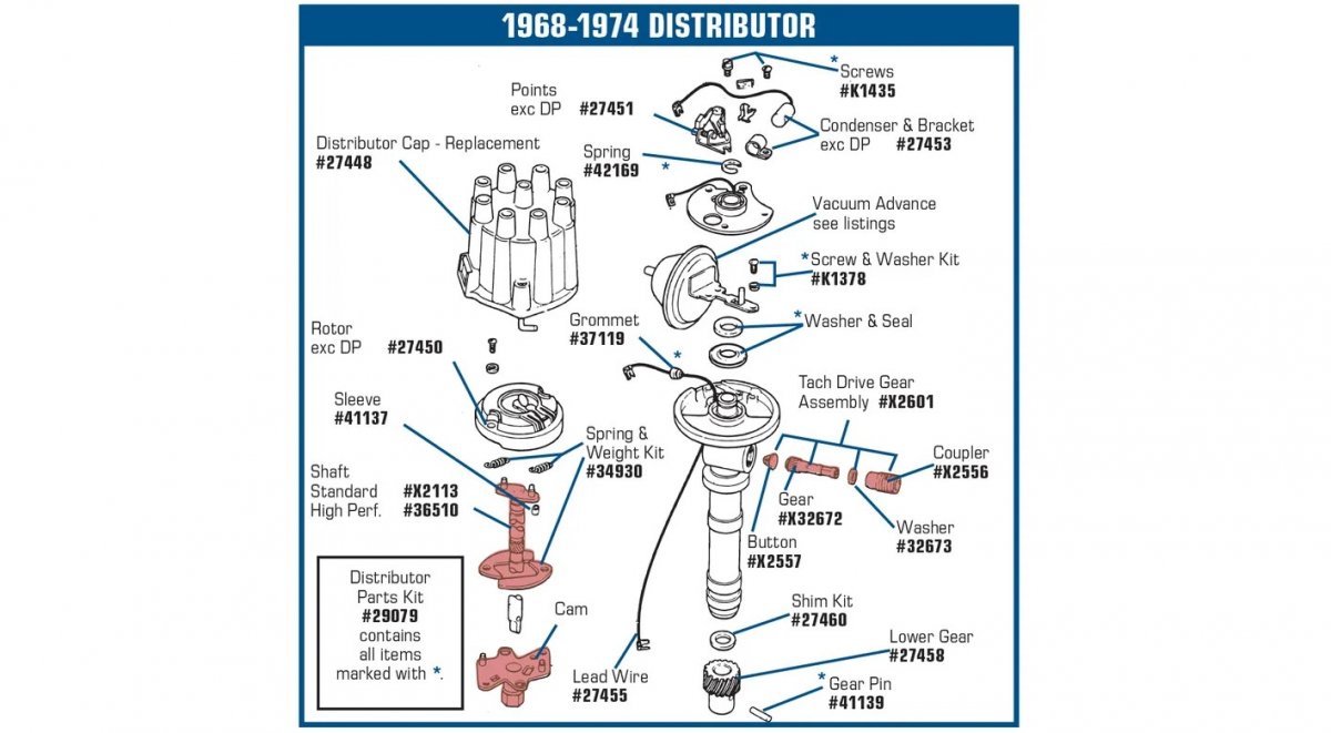 Drevsats fördelare för varvräknare 4 delar.För fördelare med utgång för varvräknarvajer.