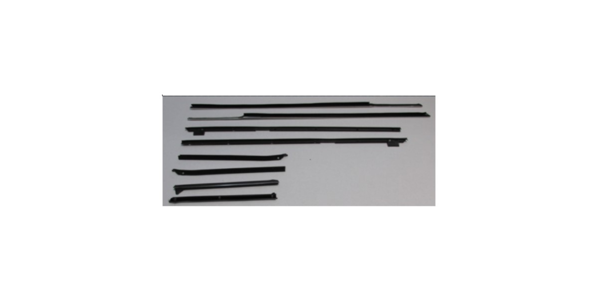 Skraplistsats i 8 delar med dom yttre listerna för alla sidorutor. Observera passar modell "Sport Coupe fastback 2 dr HT"