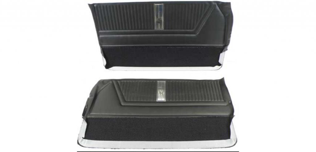 Madrid grain vinylDielectrically sealed with chrome and black mylar and vertical pleatsCarpet on bottom