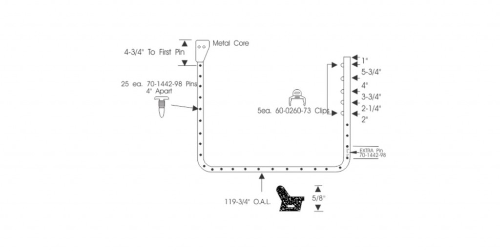 Dörrlister med gjutna ändar inklusive monteringsklipps