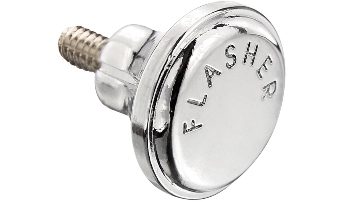 Reglageknopp varningsblinkers kromad gjuten metall med texten FLASHER.