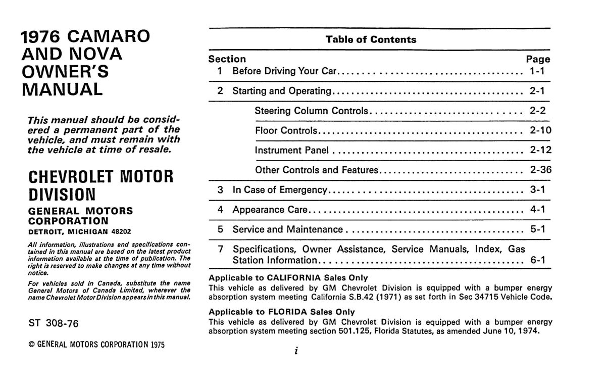 1976 Chevrolet Camaro Owner's Manual