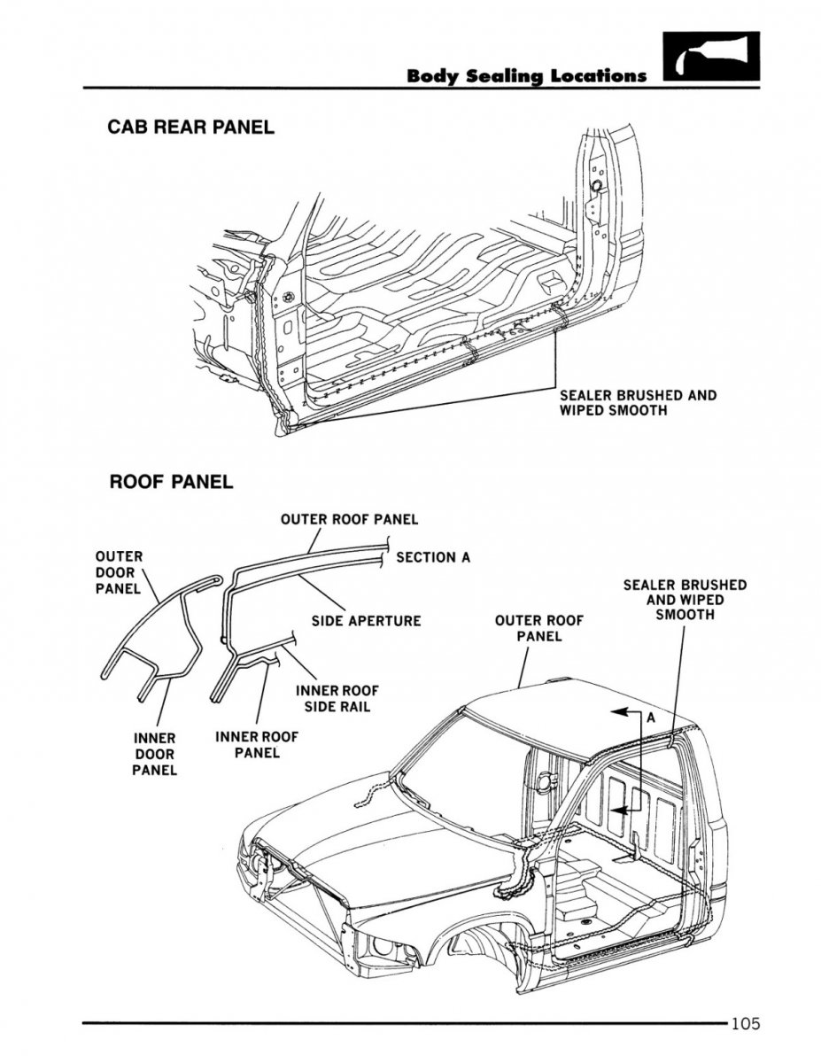 1998 Dodge Ram Truck 1500-3500 Dimensions, Joint and Seams Manual Supplement beskriver karosseri uppbyggnad med fogar, var man kittar etc.