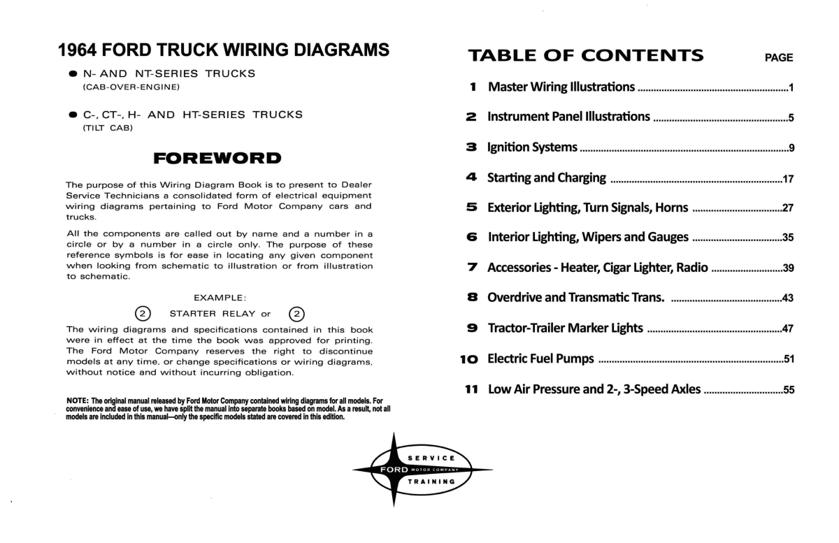 1964 Ford C, CT, H, HT, N, & NT Series Truck Wiring Diagrams Manual