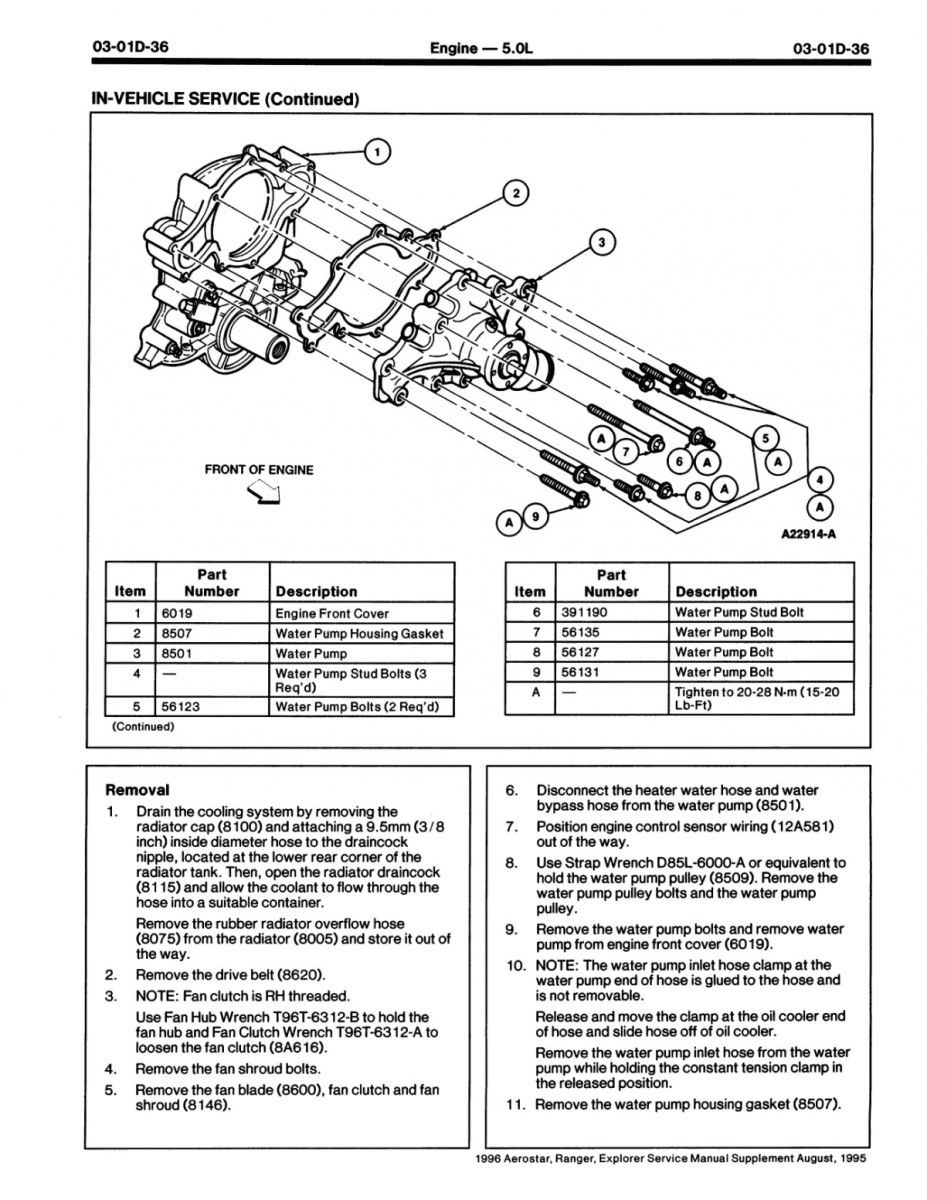 1996 Ford Aerostar, Ranger, Explorer Service Manual Supplement (tilläggsmanual)