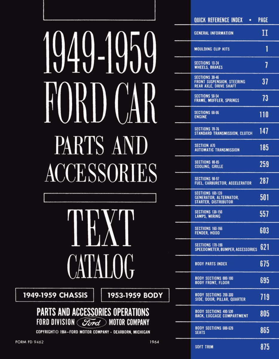 1949-1959 Ford Car Parts & Accessories Text and Illustrated Catalog
