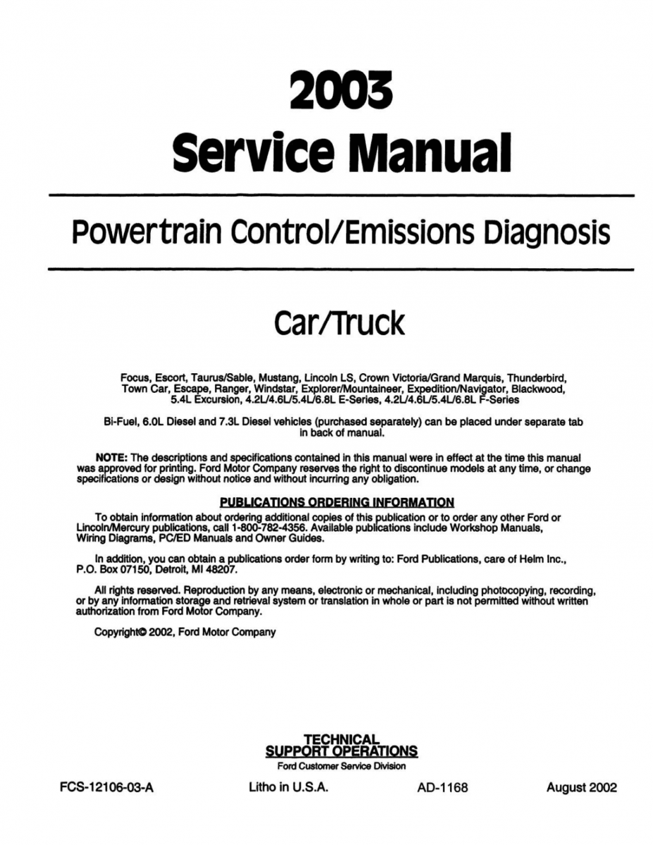 2003 Ford Car & Truck Powertrain Control / Emissions Diagnosis Service Manual