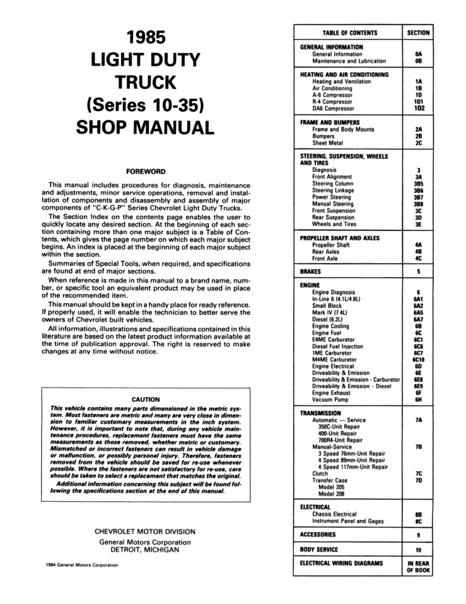 1985 Chevrolet LD Truck (10-30 Series) Shop Manual - Includes 11x26 Wiring Diagrams