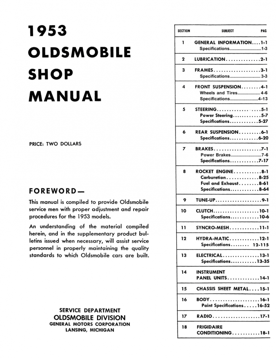 1953 Oldsmobile Shop Manual
