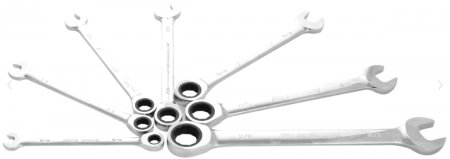 Ringnyckelsats 7 delar med tätstegad mekanism, 72 tänder 5 graders steg.